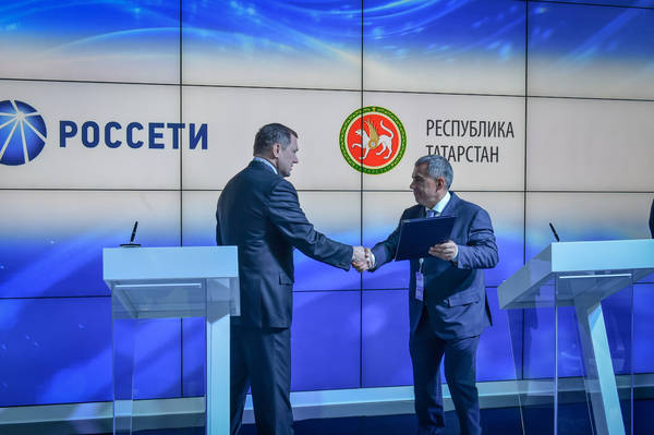 Подписание соглашения о сотрудничестве в сфере электроэнергетики между ОАО «Россети» и Республикой Татарстан. Принимает участие временно исполняющий обязанности Президента РТ Р.Н.Минниханов. Фото Марсель Бадыкшин