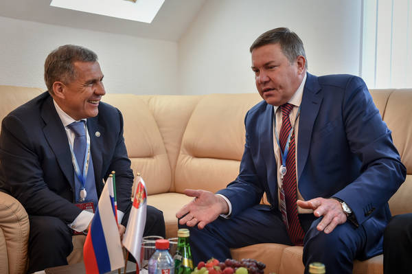 Встреча временно исполняющего обязанности Президента РТ Р.Н.Минниханова с Губернатором Вологодской области Олегом Александровичем Кувшинниковым. Фото Марсель Бадыкшин