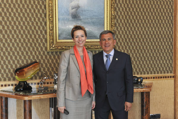 Встреча временно исполняющего обязанности Президента РТ Р.Н.Минниханова с заместителем министра экономического развития РФ - руководителем Федерального агентства по управлению государственным имуществом О.К.Дергуновой.фото Р.Кадырова.