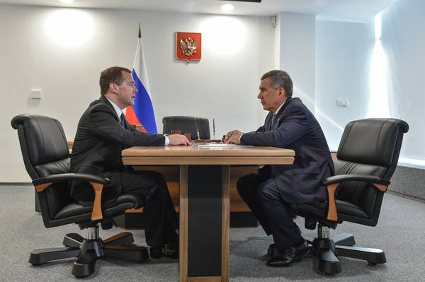 Двухсторонняя встреча Председателя Правительства России Д.А.Медведева с временно исполняющим обязанности Президента Татарстана Р.Н. Миннихановым. фото Марсель Бадыкшин