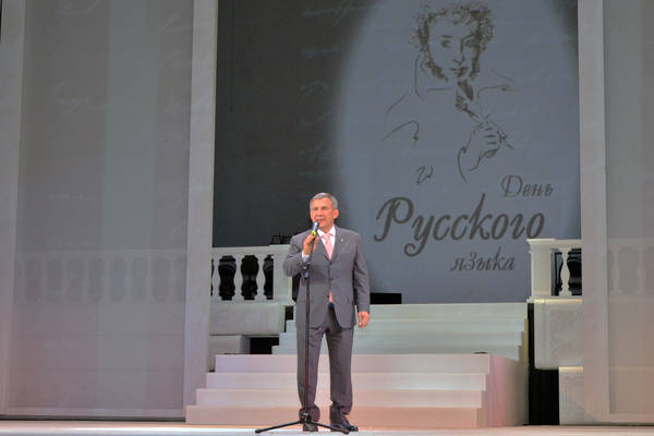 Торжественное мероприятие, посвященное празднованию Дня русского языка. Принимает участие временно исполняющий обязанности Президента Республики Татарстан Р.Н.Минниханов.фото Р.Кадырова.