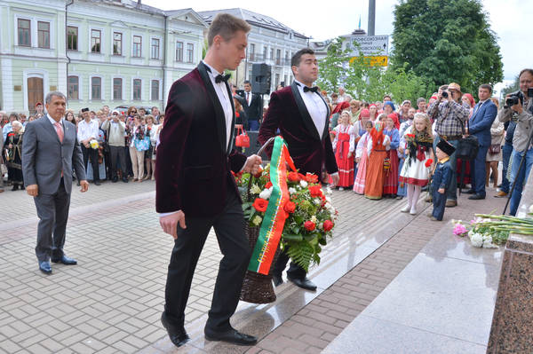 Возложение цветов к памятнику А.С.Пушкину. Принимает участие временно исполняющий обязанности Президента Республики Татарстан Р.Н.Минниханов.фото Р.Кадырова.