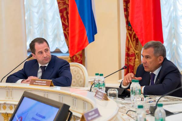 Заседание Ассоциации законодательных (представительных) органов государственной власти субъектов Российской Федерации Приволжского федерального округа. Принимают участие полномочный представитель Президента Российской Федерации в Приволжском федеральном округе Михаил Викторович Бабич и временно исполняющий обязанности Президента Республики Татарстан Р.Н.Минниханов. Фото: Михаил Фролов