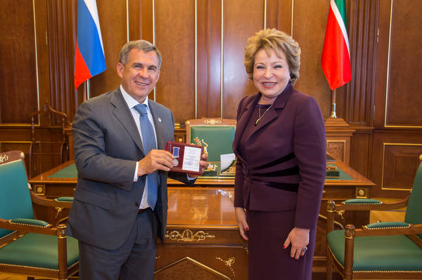Встреча временно исполняющего обязанности Президента РТ Р.Н.Минниханова с Председателем Совета Федерации ФС РФ В.И.Матвиенко. Фото: Михаил Фролов