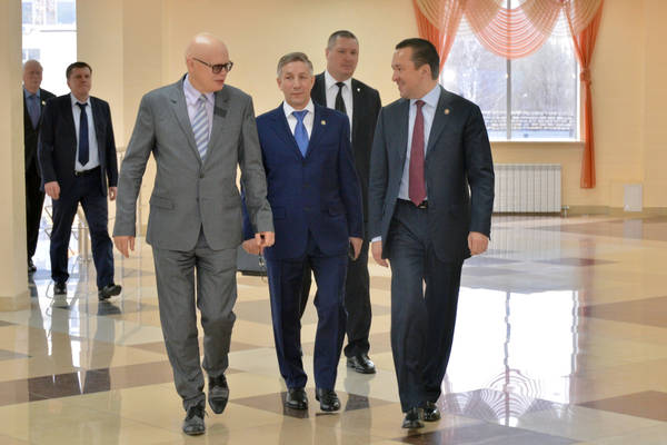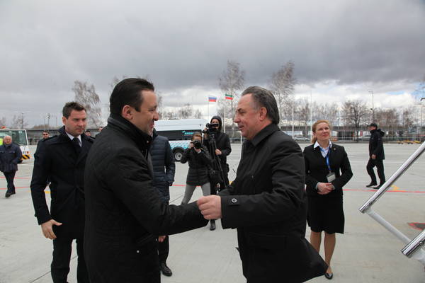 Рабочий визит Министра спорта РФ, председателя организационного комитета по подготовке и проведению XVI чемпионата мира по водным видам спорта 2015 года в г.Казани В.Л.Мутко в город Казань. Сопровождает Премьер-министр РТ И.Ш.Халиков : фото Михаила Козловского