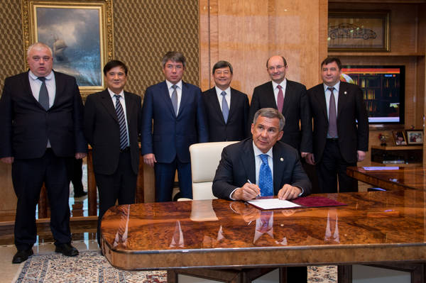 Встреча временно исполняющего обязанности Президента Республики Татарстан Р.Н.Минниханова с делегацией Китайской народной Республики, прибываюшей на V заседание Российско-Китайской рабочей группы по сотрудничеству в области высокоскоростных магистралей. Фото: Михаил Фролов