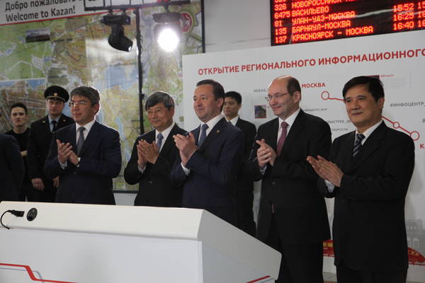 Открытие регионального Информационного центра Высокоскоростной магистрали «Москва – Казань» на территории железнодорожного вокзала «Казань-2». Принимают участие Первый вице-президент ОАО «Российские железные дороги» Александр Сергеевич Мишарин и Премьер-министр Республики Татарстан И.Ш.Халиков.: фото Михаила Козловского