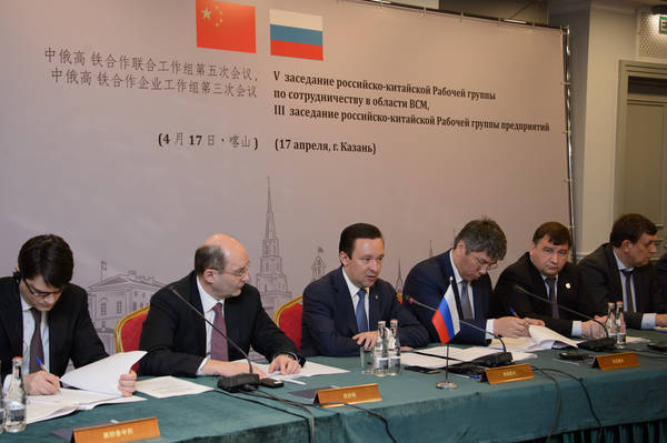 Пятое заседание российско-китайской рабочей группы по сотрудничеству в области реализации проекта строительства высокоскоростной железнодорожной магистрали. Принимают участие Первый вице-президент ОАО «РЖД» А.С.Мишарин, Премьер-министр Республики Татарстан И.Ш.Халиков. Фото: Михаил Фролов