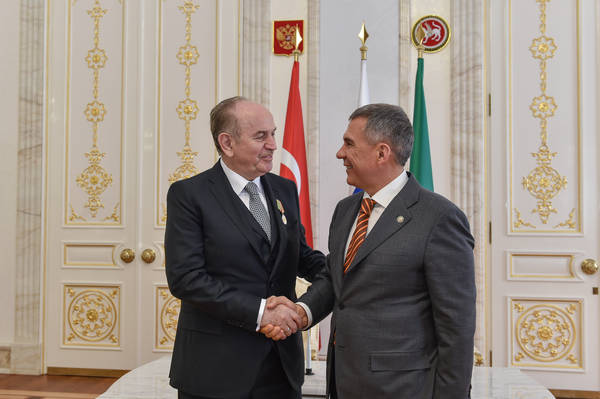 Торжественная церемония вручения врио Президента Республики Татарстан Р.Н.Миннихановым медали «За заслуги в развитии местного самоуправления в Республике Татарстан» мэру г.Стамбула Кадиру Топбашу. Фото Марсель Бадыкшин