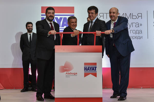 Участие врио Президента Республики Татарстан Р.Н. Минниханова, Министра экономики Турецкой Республики Нихата Зейбекчи в церемонии открытия завода «Хаят Кимья», посещение объектов ОЭЗ «Алабуга». Фото Марсель Бадыкшин