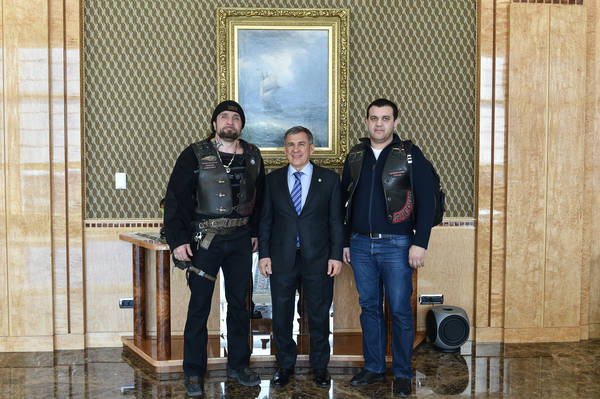 Встреча Президента Республики Татарстан Р.Н.Минниханова с основателем байкерского клуба «Ночные волки», президентом Российской ассоциации байкеров А.С. Залдостановым. Фото Марсель Бадыкшин