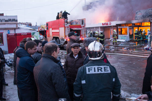 Осмотр Президентом Республики Татарстан Р.Н.Миннихановым хода ликвидации пожара в ТЦ "Адмирал". Фото: Михаил Фролов