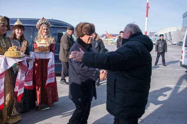 Прибытие в Республику Татарстан Губернатора Костромской области Сергея Константиновича Ситникова. Встречает Президент Республики Татарстан Р.Н.Минниханов. Фото: Михаил Фролов