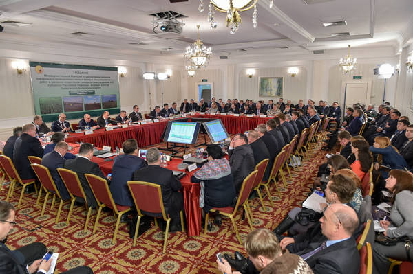 Заседание Межведомственной комиссии по рассмотрению вопросов, связанных с проведением сезонных полевых сельскохозяйственных работ и оказанию оперативной помощи органам управления АПК субъектов Российской Федерации. Проводит Министр сельского хозяйства Российской Федерации Николай Васильевич Фёдоров. Принимает участие Президент Республики Татарстан Р.Н.Минниханов. Фото Марсель Бадыкшин