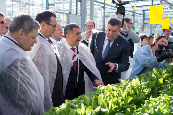 Посещение Министром сельского хозяйства Российской Федерации Николаем Васильевичем Фёдоровым ООО "Тепличный комбинат "Майский". Сопровождает Президент Республики Татарстан Р.Н. Минниханов. Фото: Михаил Фролов