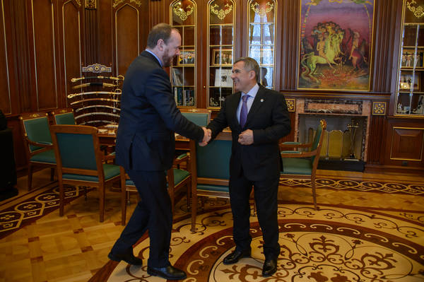 Встреча Президента Республики Татарстан Р.Н.Минниханова с Управляющим партнером компании «ПрайсвотерхаусКуперс» в России Дэвидом Греем. Фото: Михаил Фролов
