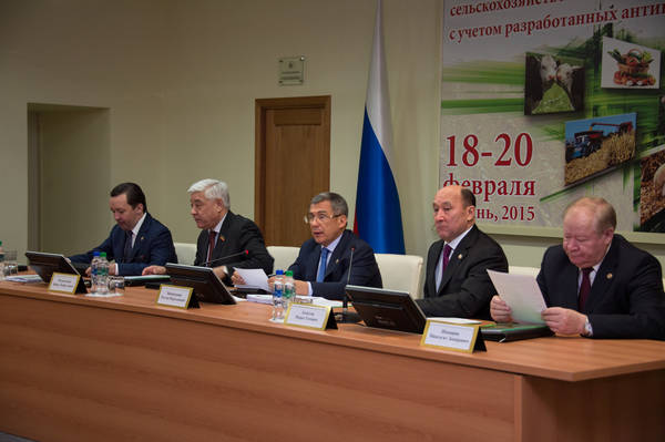 Заседание коллегии Министерства сельского хозяйства и продовольствия Республики Татарстан «Итоги развития агропромышленного комплекса Татарстана в 2014 году и пути повышения эффективности сельскохозяйственного производства в 2015 году». Принимает участие Президент Республики Татарстан Р.Н. Минниханов. Фото: Михаил Фролов