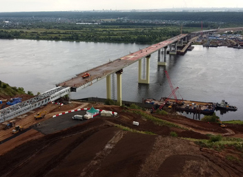 Мероприятие: Завершение надвижки пролетного строения на мосту через Каму на обходе Нижнекамска и Набережных Челнов. Принимает участие Раис Татарстана Рустам Минниханов. 08.08.2024