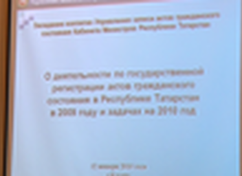 Мероприятие: Заседание коллегии Управления записи актов гражданского состояния Кабинета Министров Республики Татарстан "О деятельности по государственной регистрации актов гражданского состояния в Республике Татарстан в 2009 году и задачах на 2010 год" 12.01.2010