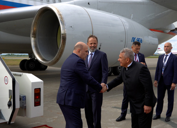 Мероприятие: Прибытие в Казань Председателя Правительства Российской Федерации М.В.Мишустина. Встречает Раис Республики Татарстан Р.Н.Минниханов. 21.08.2025