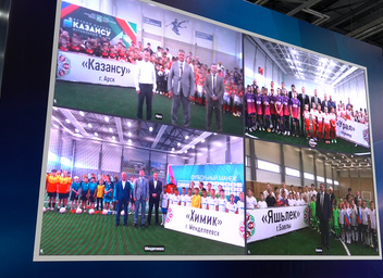 Мероприятие: Церемония открытия крытых футбольных манежей в муниципальных районах Республики Татарстан. Принимают участие Раис Татарстана Рустам Минниханов и министр строительства и жилищно-коммунального хозяйства Российской Федерации Ирек Файзуллин. 21.08.2025