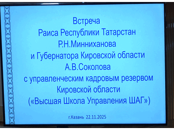Мероприятие: Встреча Раиса Республики Татарстан Р.Н.Минниханова и Губернатора Кировской области Александра Валентиновича Соколова с управленческой командой (кадровым резервом) Кировской области 22.11.2025