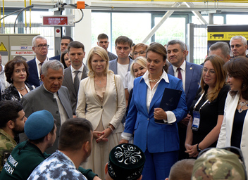 Мероприятие: Посещение Раисом Республики Татарстан Р.Н.Миннихановым, Статс-секретарем – заместителем Министра обороны Российской Федерации, Председателем Государственного фонда поддержки участников специальной военной операции "Защитники Отечества" Анной Евгеньевной Цивилевой площадки Чемпионата по профессиональному мастерству среди участников специальной военной операции "Абилимпикс" 29.07.2025