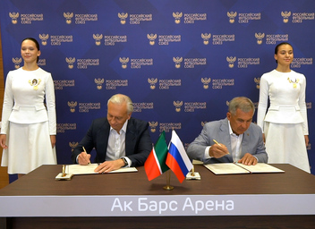 Мероприятие: Церемония подписания Соглашения о сотрудничестве и взаимодействии в сфере развития вида спорта "футбол" между Министерством спорта Российской Федерации, Правительством Республики Татарстан, Общероссийской общественной организацией спортивной федерацией по футболу "Российский футбольный союз" и Региональной общественной организацией "Федерация футбола Республики Татарстан". Принимают участие Раис Республики Татарстан Р.Н.Минниханов, президент Российского футбольного союза А.В.Дюков. 12.07.2025