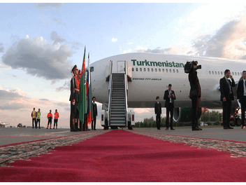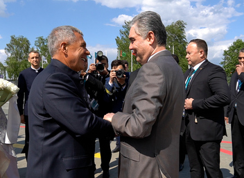 Мероприятие: Прибытие Национального Лидера туркменского народа, Председателя Халк Маслахаты Туркменистана Г.М.Бердымухамедова. Встречает Раис Республики Татарстан Р.Н.Минниханов. 16.05.2025
