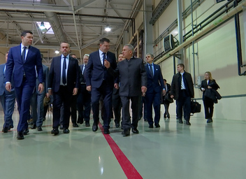 Мероприятие: Церемония вручения свидетельства об Одобрении главного изменения типовой конструкции самолета Ту-214. Принимают участие Раис Татарстана Рустам Минниханов, министр промышленности и торговли России Антон Алиханов, министр транспорта России Андрей Никитин. 27.12.2025